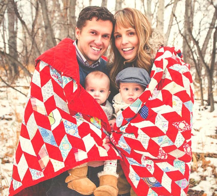 Семейное фото можно также поставить под лозунгом «Согрей меня». Яркий плед или одеяло — и фото получится очень теплым и уютным.