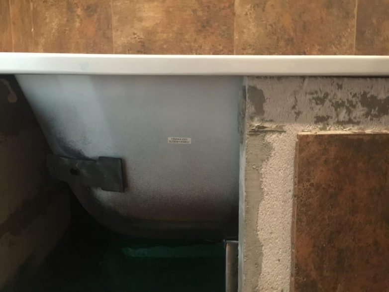 Под ванной стояла вода. Кстати, вот что делает качественная гидроизоляция — вода не уходила к соседям, а оставалась в пространстве, которое закрыто пеноблоками, и там уже испарялась.