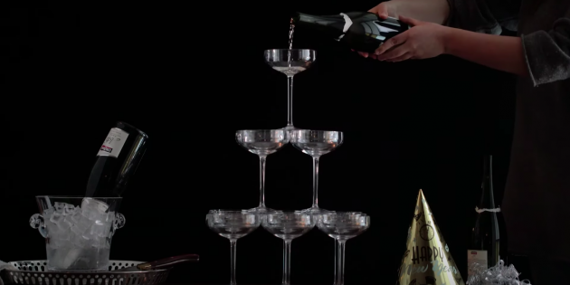 Заранее потренируйтесь разливать жидкость в бокалы, тогда на празднике всё точно пройдёт идеально. Лучше всего сначала попробовать с водой, чтобы не тратить шампанское.