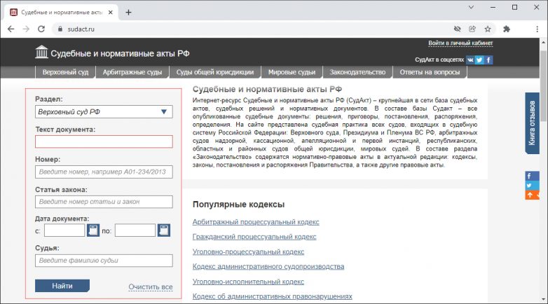 Кроме того, есть хорошая база «Судебные и нормативные акты РФ». Её тоже стоит использовать.