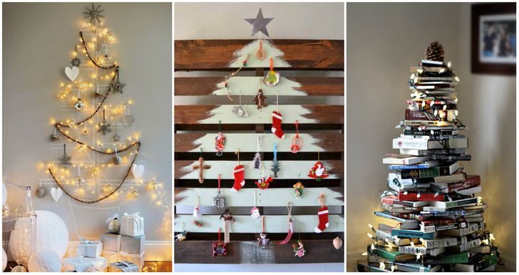 Маленькая квартира не повод отказываться от елки. Тем более что традиционную ель вполне можно перенести на стену: нарисовать или составить ее силуэт из отдельных мелких предметов. Получится настоящий арт-объект!