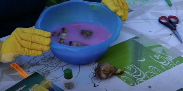 Снимать чешую с луковиц не нужно, просто поместите их в любой из растворов на 30 минут. Потом достаньте, разложите на салфетке или газете, просушите в течение часа и приступайте к посадке.