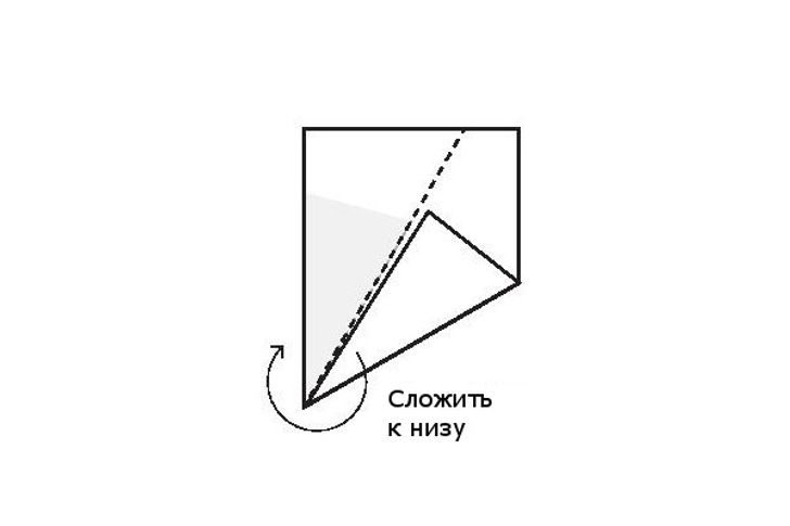 3. Если у вас осталась всего одна линия по центру, то смело сгибайте по ней заготовку (рисунком вверх) и переходите к шагу 7. Если же видите 2 линии (делящие поверхность на углы под 30 градусов), то сложите нижний кончик кверху по линии сгиба, чтобы он образовал угол в 30 градусов.