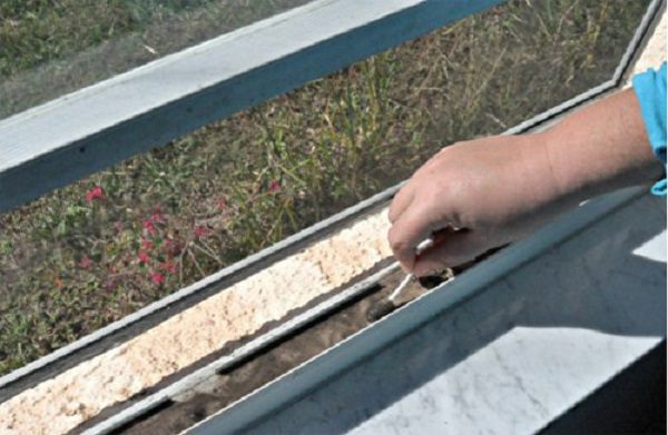 Посыпь нижнюю часть оконной рамы тонким слоем соды. Особенно важно, чтобы сода попала во все углы.