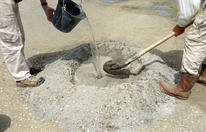 Первое, что потребуется сделать, это провести расчет пропорций всех составляющих: воды, необходимых наполнителей и цемента. После этого в емкость наливается требуемое количество воды, а в нее – цемент (всыпать его необходимо понемногу постепенно). Так мы сделаем цементное молочко. В него засыпается тоже понемногу песок и все хорошо перемешивается. В последнюю очередь добавляется щебень, и масса перемешивается, чтобы она стала однородной.