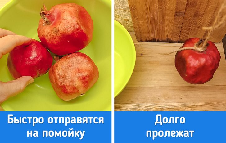 Чтобы гранаты подольше сохранили вкус и свежесть, их стоит разложить в темном, сухом месте, разместив подальше друг от друга