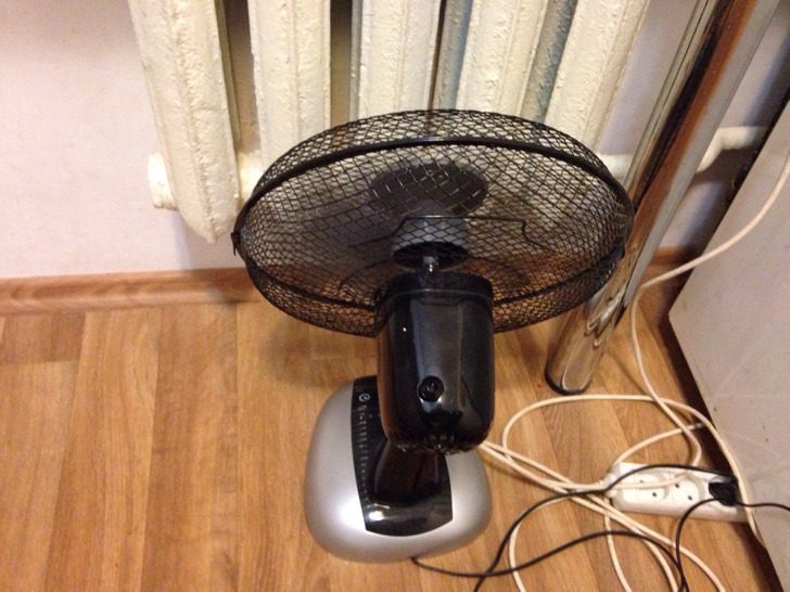 Метод, при помощи которого я спасался в хрущевке от лютых холодов. Берем летний вентилятор и направляем его на батарею. Он начинает гнать воздух, который циркулирует в помещении, сквозь горячий радиатор. Эффект просто поразительный. Вдвойне поразительно то, что расходы на электричество практически не увеличиваются. Мощность вентилятора около 40-60 Вт — как старая лампочка. А мощность обогревателя, который в таком случае не нужен, — около 2000 Вт. © Bristel