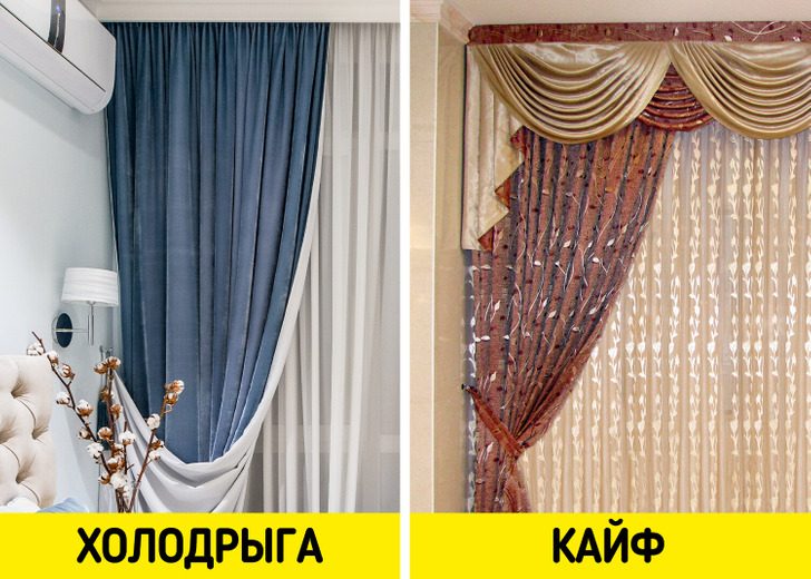 Плотные занавески уменьшают потерю тепла на 40%. Отдайте предпочтение моделям из бархата или любой другой тяжелой ткани, избегайте хлопка. Вешайте шторы максимально близко к стеклу и не забывайте задергивать их, когда солнце уже скрылось за горизонтом.