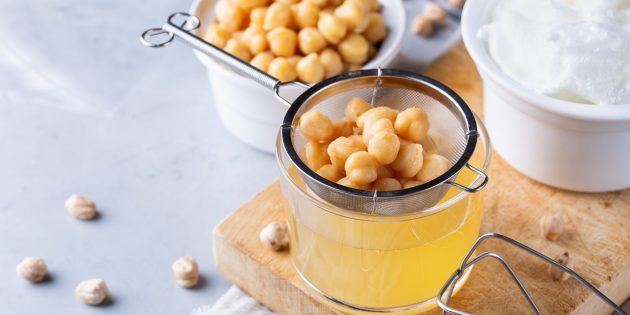 Нут пригодится для домашнего хумуса или полезного десерта, например брауни или печенья. И не выливайте аквафабу — жидкость от варки бобовых: её используйте вместо яичных белков для выпечки и соусов.