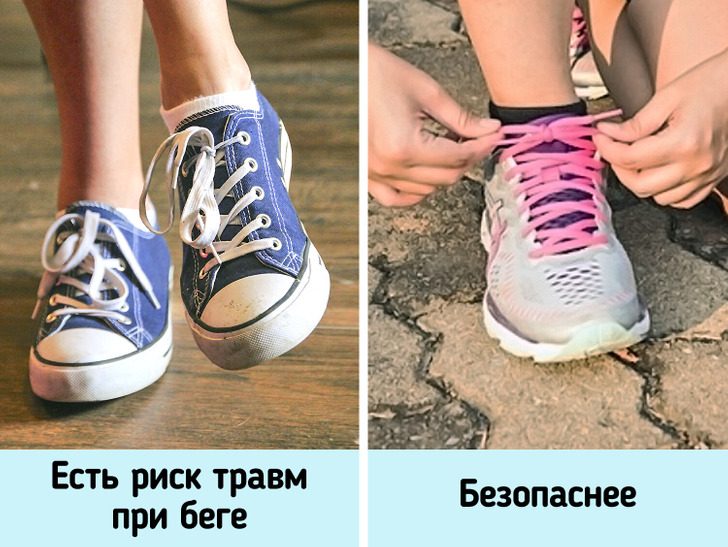 Большинство людей бегают, перекатывая ногу с пятки на носок, что усиливает удары о землю или асфальт. Поэтому небольшая амортизация, которая есть в обуви с прослойкой из пены, может быть полезна. В кедах, где подошва целиком состоит из резины, такой прослойки нет, поэтому их лучше оставить для велоспорта или тренировок в помещении.