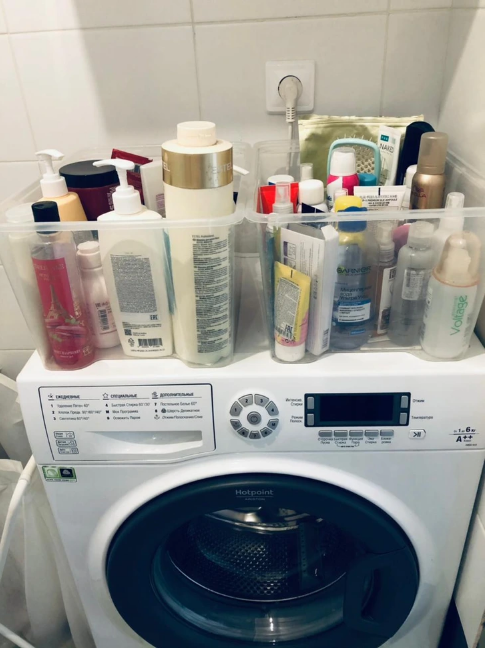 Бытовые средства, которые хранятся на стиральной машинке