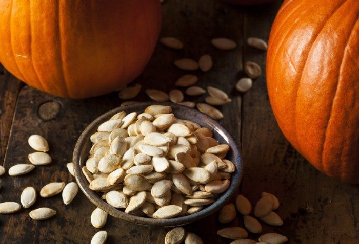 Семена тыквы обогащены цинком и фолиевой кислотой — элементами, которые непосредственно влияют на выработку половых гормонов. Нидерландские ученые выяснили, что регулярное употребление семечек увеличивает количество сперматозоидов на 74%, а также улучшает состояние волос и кожи. Их можно есть в чистом виде или добавлять в салаты, супы.