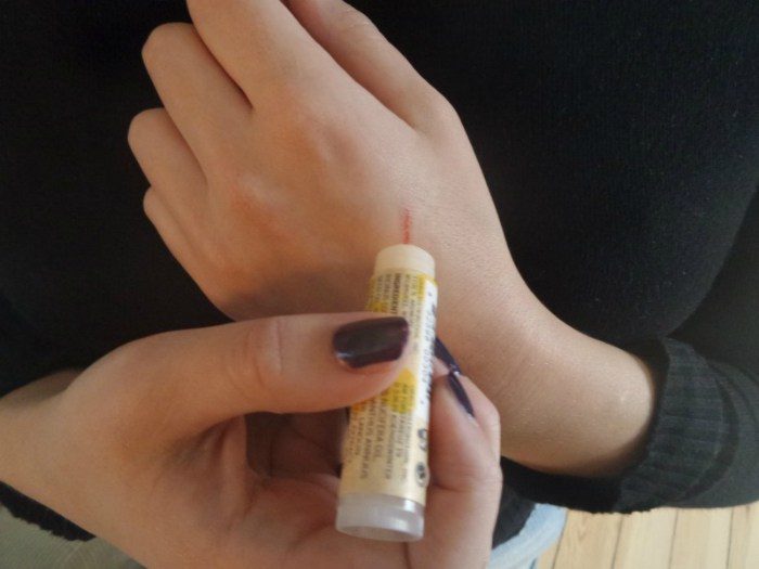 Небольшие царапины и порезы можно обработать гигиенической помадой, если под рукой нет специальных медицинских средств. Это убережет ранку от попадания в нее инфекции, а также ускорит заживление.