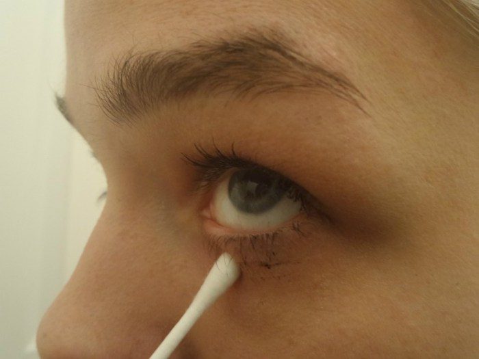 Следы от туши легко устранить ватной палочкой, смазанной помадой. Кстати, если случилось такое, что ты ночуешь вне дома, а средства для снятия макияжа нет, воспользуйся гигиенической помадой. Не слишком удобно, но всё же лучше, чем просто мылом, высушивающим кожу.