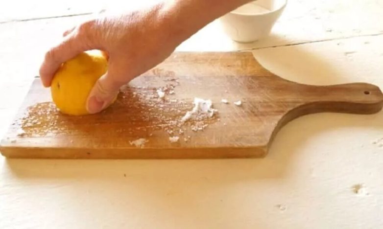 Сок лимона — натурально и чисто. Очистит плиту, кафельную плитку, а с добавлением соли — разделочную доску. Можно тереть прямо половинкой цитруса.