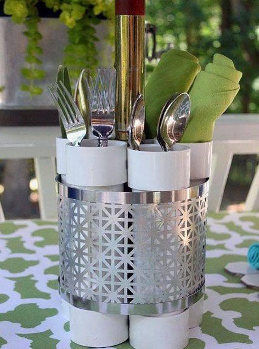 Создание оригинальной подставки для столовых приборов из труб ПВХ.