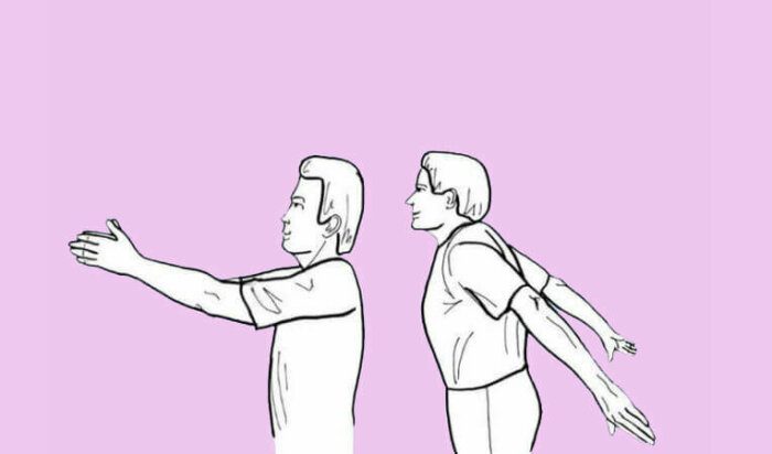 Это упражнение призвано исправить осанку, но отлично справляется еще и с влажным кашлем. Цель – максимально свести лопатки. Плечи отводятся назад, вплоть до болевых ощущений. Повторяйте до 10 раз в сутки, удерживайте позу 20-30 секунд.