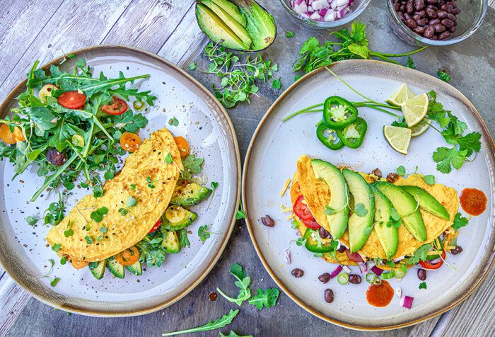 Если вам не по душе мясные блюда или хочется взять перерыв – попробуйте этот сытный вариант омлета. Сдобренный с помощью фасоли и сыра, он прекрасно подойдёт в качестве полезного перекуса.