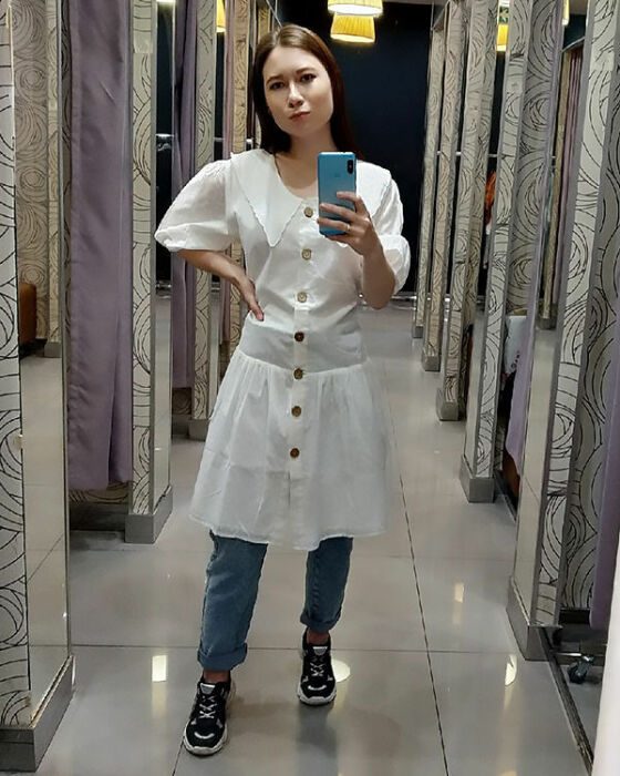Да, лень. Да, торопимся. Да, не хочется по несколько раз снимать и надевать брюки. Однако оставлять их во время примерки платья – большая ошибка. Так мы рискуем приобрести наряд, который не подходит по длине, зрительно обрезает ноги и вместо того, чтобы вытягивать силуэт, укорачивает рост. Оптимальный вариант – зайти в примерочную и померить платье с той обувью и аксессуарами, с которыми планируем носить его после покупки. Если вы пришли в магазин в шортах и шлепанцах, найдите обувь, похожую на вашу, или на нужном каблуке. Так вы сможете увидеть не только идет ли вам это платье, но также нравится ли подобное сочетание.