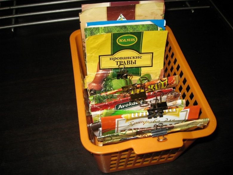 Специи, которые вы чаще всего используете на своей кухне, например, перец, сушеные травы, приправы для мяса и курицы, можно покупать с небольшим запасом. Но специфические пряности (имбирь, куркума, чили и пр.), которые нужны несколько раз в месяц, лучше приносить домой по мере необходимости. Дело в том, что ароматные специи очень быстро теряют свой запах и полезные свойства, за которые их, собственно, и ценят, даже при грамотном хранении. Что уж говорить о ситуациях, когда хозяйки держат их в открытых упаковках.
