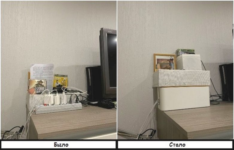 Красивая коробка, специально предназначенная для хранения удлинителя, решит сразу все проблемы. Она обеспечит эстетичное хранение, защиту от домашних питомцев и пыли. Подбирайте максимально лаконичные варианты коробок, которые сочетаются по цвету с вашим интерьером. Беспроигрышный вариант – белые, черные или бежевые экземпляры, но если в комнате есть какие-то акценты (например, зеленые шторы или декоративные подушки), можете отдать предпочтение коробке такого оттенка.