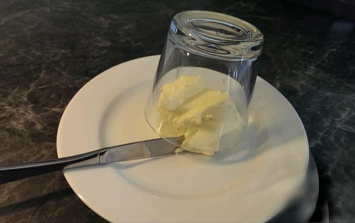 Лайфхак 9: Размягчить масло можно с помощью стеклянного бокала