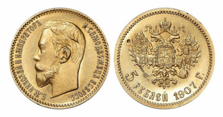В начале XX столетия в Сибири нашли золотой самородок весом 5 кг, из которого император Николай II приказал сделать монеты в количестве 175 экземпляров. На аверсе монеты изобразили правый профильный портрет Николая II, на реверсе — двуглавого орла. Правитель хотел презентовать эти монеты в свой 40-й день рождения своей семье и близким друзьям. Монеты были выполнены из золота 900 пробы. Вес чистого золота каждого экземпляра составлял около 29 гр.
