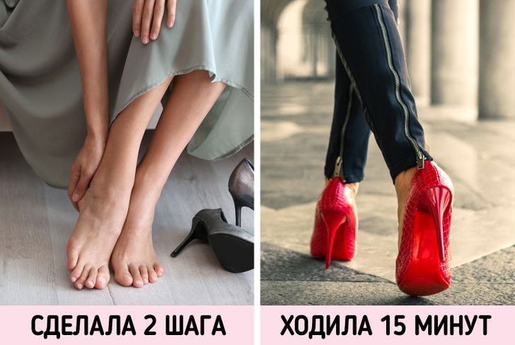И чрезмерно высокий каблук, и не в меру острый носок могут навредить нашим ножкам. Представьте, какое комбо получится, если выбрать туфли-лодочки на высоком каблуке: давление на подушечки стопы будет очень сильным. Поэтому лучше отдать предпочтение чему-то одному. Например, если выбираете высокий каблук, ищите более широкий носок.