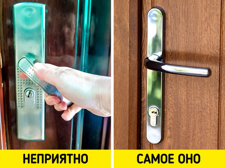 Большинство входных дверей в магазинах идут в комплекте с самыми дешевыми ручками, которые в идеале лучше бы заменить. Мы редко обращаем внимание на эту деталь, но именно к ручке мы в первую очередь прикасаемся, когда заходим в дом. Если она неприятна на ощупь, слишком тугая или из нее выпирают винтики — впечатление у гостей сразу испортится.