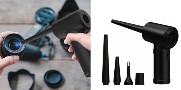 Прибор поможет очистить от пыли корпус компьютера, продуть вентиляционные решётки на ноутбуке или игровой консоли. Избавиться от мусора в клавиатуре с воздуходувкой тоже будет проще. Питается устройство от аккумулятора — шнур не помешает добраться до труднодоступных мест и узких щелей.
