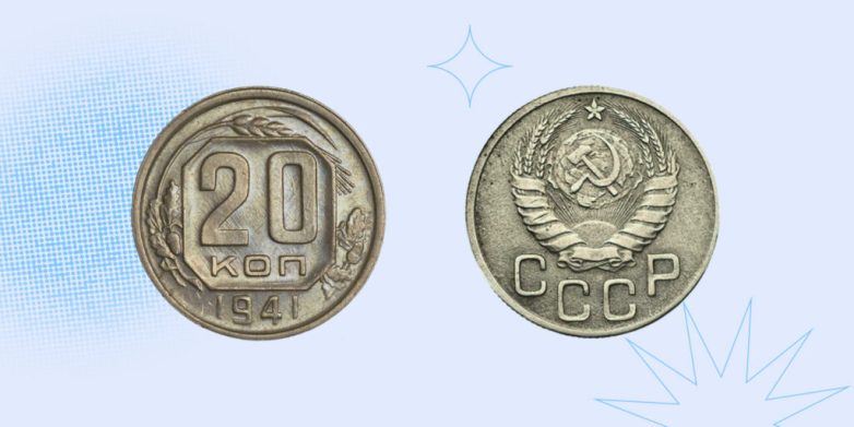 20 копеек 1941 года существуют в двух разновидностях: с обычной звездой над гербом и со звездой, образованной ромбами. Первый вариант оценивается в среднем в 100 рублей, второй — в 50 тысяч.