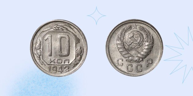 В 1958 году власти готовили денежную реформу, поэтому было отчеканено много монет разного номинала. Однако потом решили отложить важные изменения. Деньги, уже разосланные по сберкассам, отозвали назад. Но кое‑где их успели пустить в оборот. Так что 10‑копеечники всё-таки начали кочевать по кошелькам. Запросить за такой экземпляр можно больше 100 тысяч рублей.