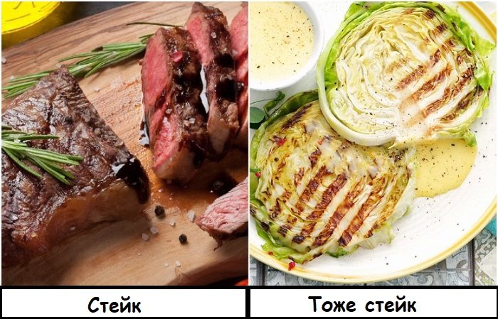 Наверняка вы обращали внимание, что стейк и жареный кусок мяса без громкого названия стоят абсолютно по-разному. И в этом есть смысл, так как для приготовления классического стейка используется мясо особой породы бычков, у которых был специфический режим откорма. Правильно выбранный отруб тоже имеет важное значение. Все эти факторы формируют высокую себестоимость и, соответственно, цену в меню. Однако владельцы ресторанов не всегда соблюдают предписанные нормы, из-за чего в меню появляются «стейки» из свинины, курицы, рыбы и даже капусты (а вы же запомнили, что настоящие готовятся только из говядины, да?) Понятно, что о степени прожарки речь уже не идет, да и вкус получается абсолютно другим.