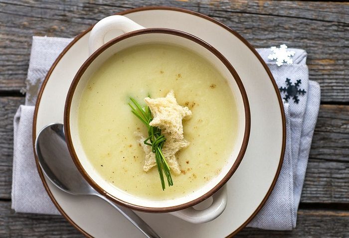 Несмотря на то, что у названия блюда явно французские корни, существует теория, что его создали в Нью-Йорке. Оно представляет собой суп-пюре, главными составляющими которого являются лук, картофель, куриный бульон и сливки. Скорее всего, на создателя рецепта очень сильно повлиял французский луковый суп, однако подача у вишисуаза другая. В отличие от знаменитого блюда, создание которого приписывают Людовику XV, американский суп подают холодным.