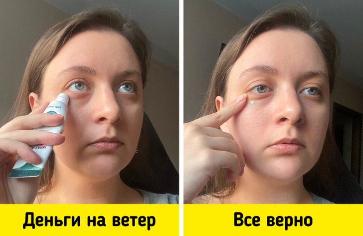 На самом деле кремы, предназначенные для области под глазами, скорее всего, лишь уловка производителей, которые утверждают, что в этих местах кожа более чувствительная. Однако обычный крем вполне подходит и для этой области лица, так что не нужно покупать специальный бьюти-продукт. Если же появляется раздражение, то это означает, что проблема в креме и его составе, а не в коже под глазами.