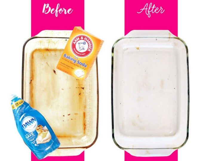 Метод, который вообще не требует ваших усилий для достижения блестящего результата. Просто засыпьте противень пищевой содой, добавьте перекись водорода, затем ещё немного соды и оставьте его в покое на несколько часов. Нагар растворится буквально сам собой, а вам нужно будет только хорошенько сполоснуть посуду и пройтись жёстким ёршиком.