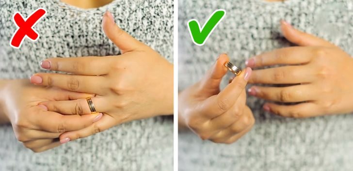 Если вы не можете снять кольцо с пальца, просто поднимите руку вверх и подержите ее так несколько минут. Кровь отхлынет от кисти к плечу, и вы сможете снять кольцо.