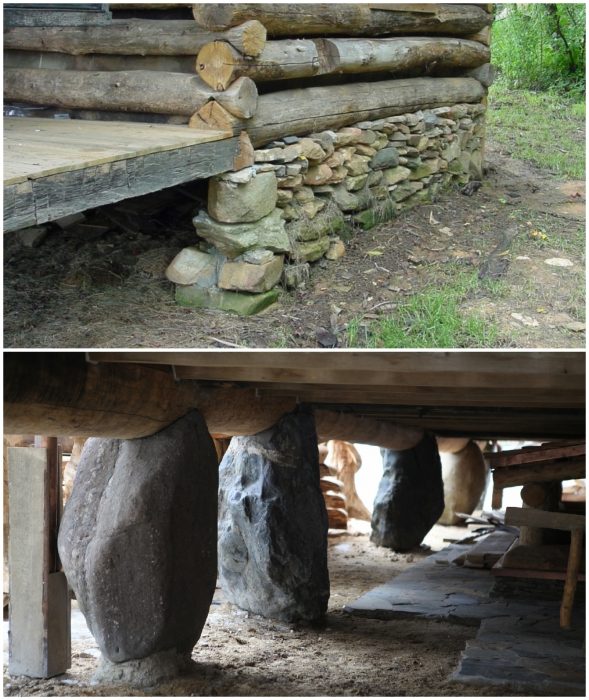 Чаще всего деревянные срубы устанавливали на каменные «стулья».