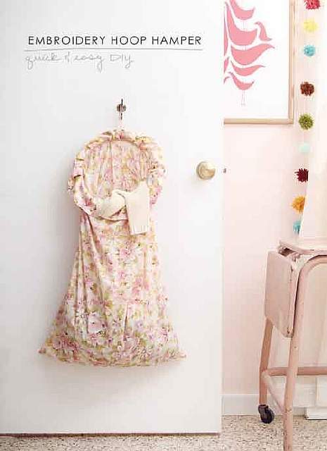 9. Пяльца для вышивания + мешок из ненужного куска ткани – и можно обойтись без корзины для белья.