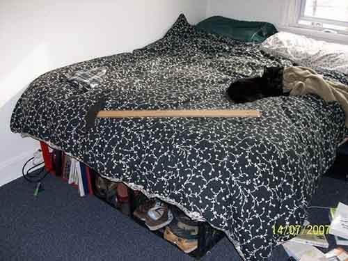 8. Супердешёвый вариант: надувной матрац на пластиковых ящиках. Особенно подходит для студентов.