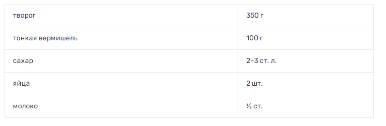 Тщательно перемешать творог и сахар. Аккуратно добавить вермишель. Выложить массу в форму для выпечки.
