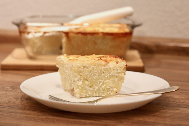 Яйца взбить вилкой. Добавить молоко. Залить запеканку этой смесью. Проткнуть вилкой в нескольких местах, чтобы жидкость протекла внутрь. Печь при температуре 180 градусов около получаса.