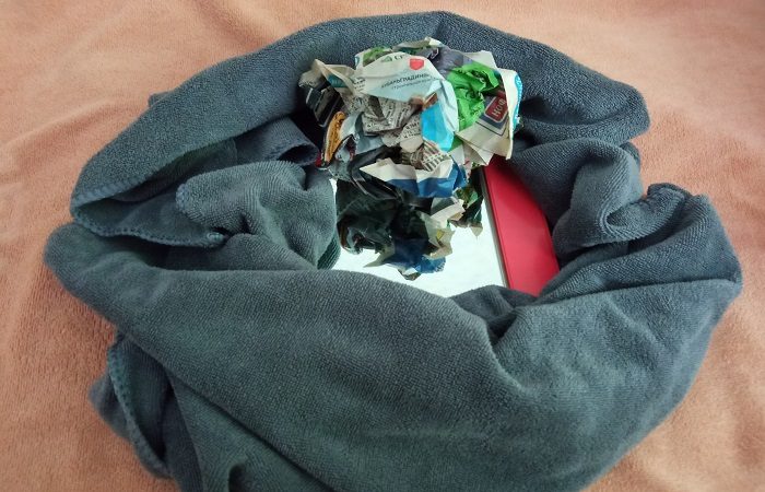 Для того чтобы зеркало сияло, понадобится всего лишь газета или журнал. Важно – их поверхность не должна быть глянцевой. Газетный лист необходимо хорошенько скомкать и слегка намочить водой. Затем им полируют зеркальную поверхность, уделяя особое внимание загрязненным участкам. Газета помогает быстро избавиться от разводов и грязи. Как вариант, жидкость на зеркальную поверхность можно нанести и при помощи пульверизатора. Затем отполировать ее газетным комком.