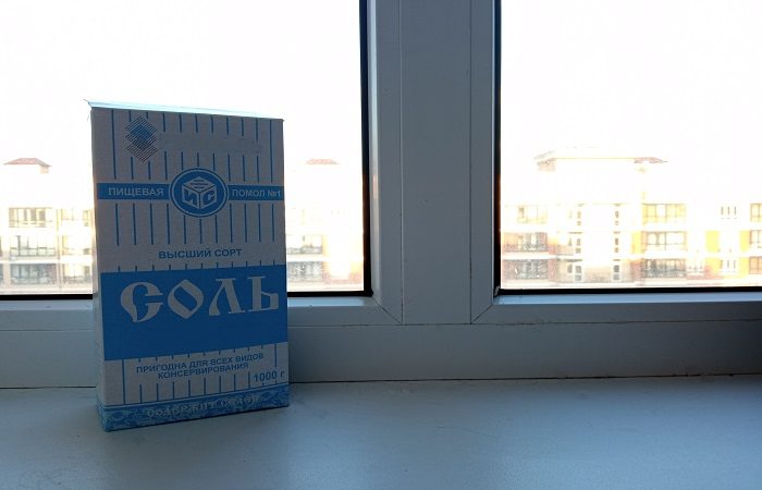 1. Соль. Сыпучий минерал отлично впитывает и удерживает влагу. Если створки окна двойные, то емкости с солью ставят между ними. Как вариант, раскладывают слой ваты и рассыпают на ее поверхность соленый минерал. В случае, когда установлены пластиковые окна, поступают другим образом. Небольшие емкости с солью ставят в нескольких местах подоконника. При желании их декорируют. Кроме этого, стекла можно периодически протирать соленым раствором.