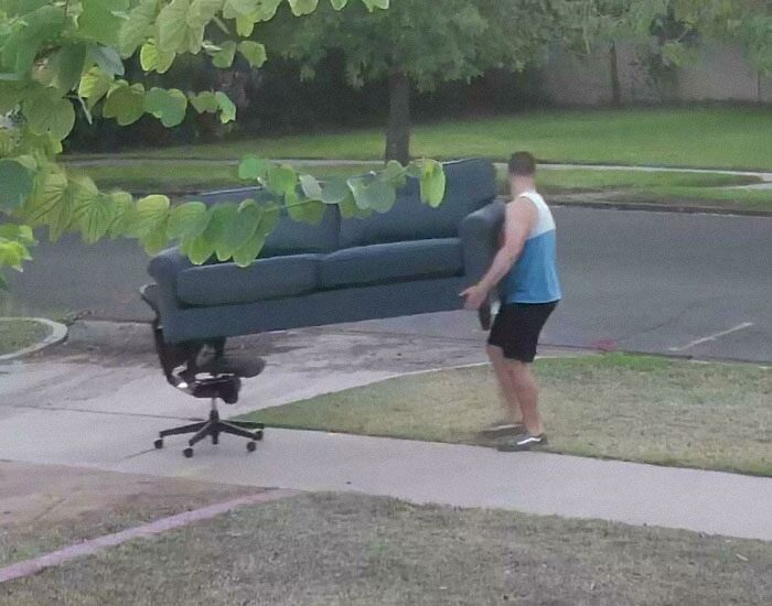 1. Перенести диван в одиночку сложно, но возможно (на ровной дороге точно сработает).