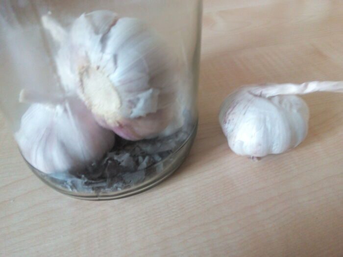 «Секретный» ингредиент для длительной консервации – это обычная древесная зола. Раздобыть такое счастье в городе практически невозможно, а потому будет не лишним привезти пакетик-другой с дачи. Помимо золы понадобится обрезанный и высушенный чеснок, а также ящик, коробка или банка, в которую будут складываться дары огорода.
