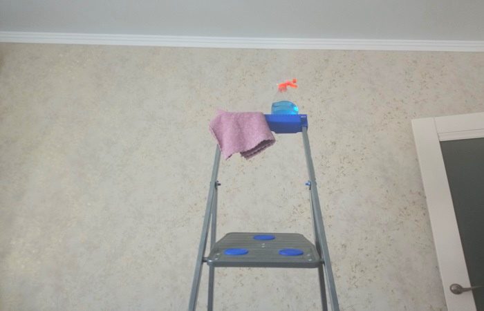 1. Стремянка. Раздвижная лестница облегчит процесс ухода за потолком. Ее легко перемещать в разные места помещений.