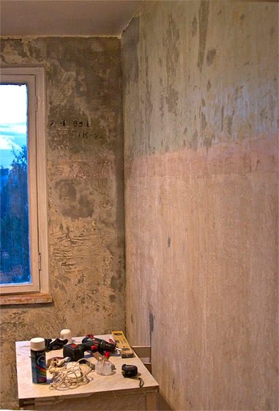 Наконец-то удалось очистить от обоев последнюю стену. Война шла за каждый сантиметр: адская смесь клея, который от воды становится ужасно скользким, оставил меня практически без рук.