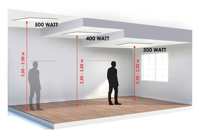Инфракрасные обогреватели могут располагаться на потолке, не отнимая полезную площадь стен и пола.